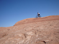 The trail was lots of slickrock ledges and even more interesting than the slickrock trail. Following the blue arrows and up some huge switchback climb with real exposed drops that you must not put a wheel/foot/pedal wrong on!